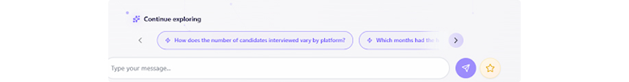 Just above your message bar, you’ll see the Continue Exploring section. This feature provides AI-generated question suggestions based on your recent queries and data context.