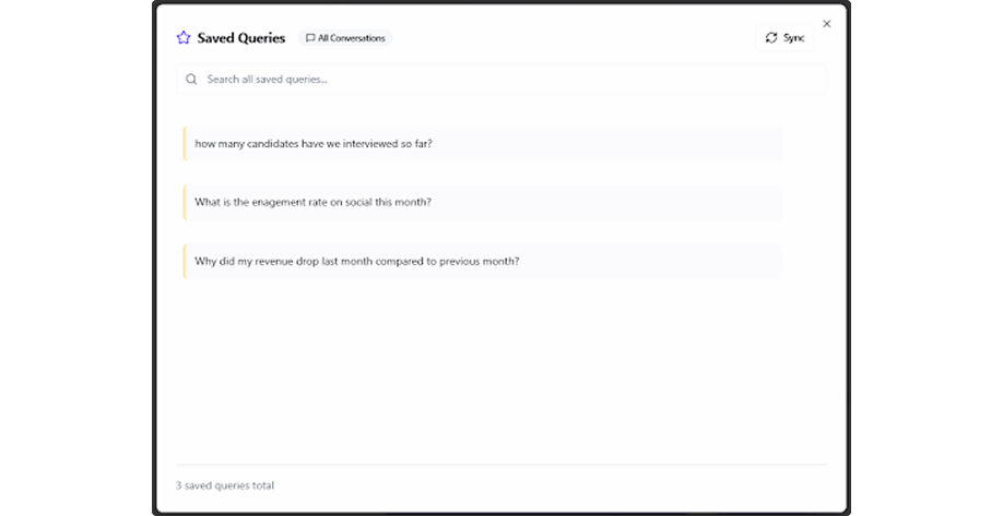 Reusing queries: Saved queries can be used across all your conversations, making it easy to rerun your most important or recurring questions.