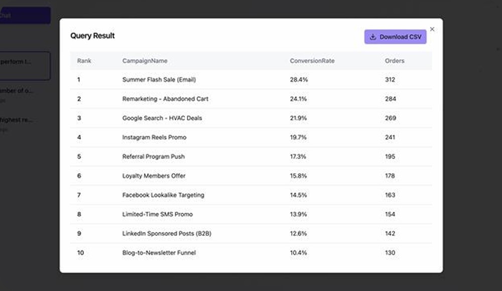 I simply ask a question and receive instant insights into campaign performance and customer behavior, all through a chat.